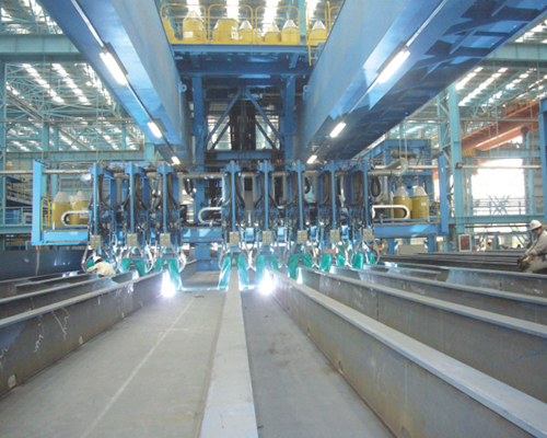 The main workload of shipbuilding is in section manufacturing, it is large volume, large quantity, long consumption time,requires more production processes.It needs to be produced in order then improve production efficiency reduce laborworking intensity, our company has developed flat section sub-assembly welding production line.This production line ismainly composed of pre-assembled steel plate platform, FCB single-side welding double-side molding machine ( double-sides submerge arc welding), cutting grinding line , longitudinal installation machine , longitudinal bone welding mach-ine, rib plate installation machine (rib pulling device), ribbed plate welding machine, transport trolley, sectional jackingmachine ground logistics delivery system.The flat sub-assembly welding production line is divided into FCB single-sidewelding double-side forming method according to different production methods,steel plate turning double-sides weldingmethod single plate long steel bar method.