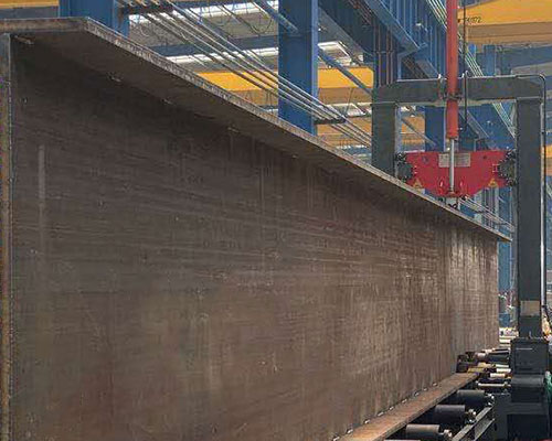 The machine is mainly composed of front rear conveyor rollers,flange plate web pre-centering manipulators,H-beam precision assemble host,positioning spot welding system, hydraulic system electronic control system.flange,automatic control for web clamping automatic spot welding process , host drive using AC inverter control, smooth operation, stepless speed. It have automatic centring semi-automatic centring two types.